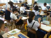 自分の考えをタブレットに記入して先生に送ります。慣れたもので、どんどん送っています。
