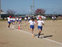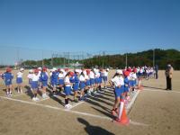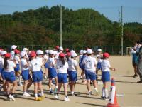 今日は1年生と4年生です。体育の時間で練習してきたことを発揮する時間です。