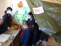 教室の中はハロウィンのお化け屋敷。入る前からドキドキの1年生です。