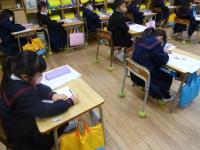 机やいすを全部移動して練習していました。冬休みには家でも練習するのでしょうね。