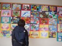 今回の作品展は、色遣いが明るく、宇宙がテーマになっていたり、想像した花がモチーフになっていたりしています。
