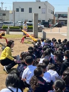 子どもたちは、周りを見ながらもその場に座って静かに耳を傾けていました。