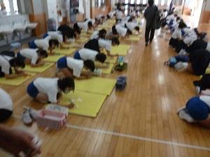18日(火)の2~4時間目に、全校児童が津幡音頭の練習をしました。
