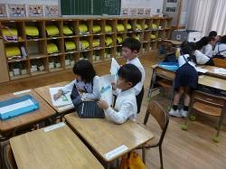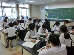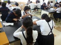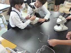 5年生が理科の時間に食塩の観察をしていました。