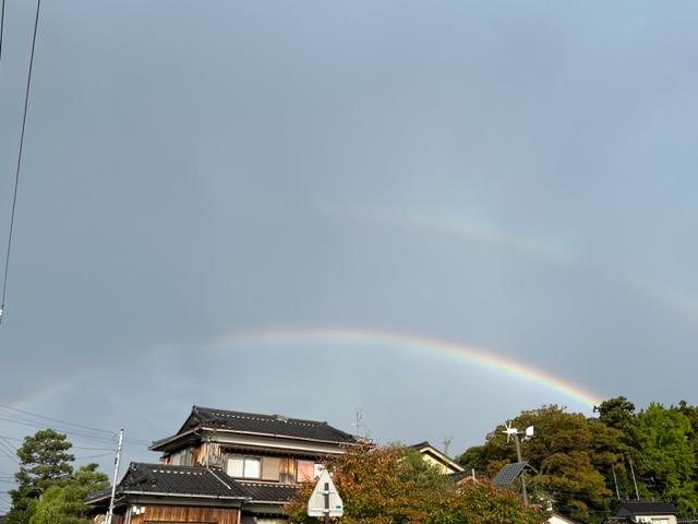 ふと、空を見るときれいな虹が西の空に出ていました。