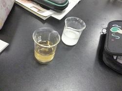 5年生は理科の学習です。物の溶け方について学んでいます。片栗粉とコーヒーシュガーは水
