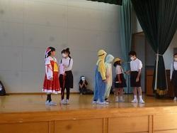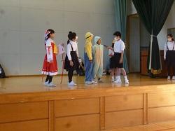 1年生は国語の授業です。グループになって、音読の練習をしていました。登場人物になり