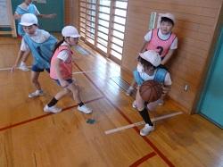 4年生は、体育の時間にバスケットボールに取り組んでいます。