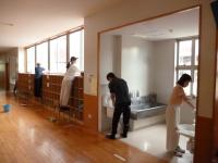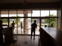 保護者と児童、職員合わせて82名が参加し、校内の窓ガラスや棚の上の拭き掃除、洗面台磨きなど、普段の掃除では手が届かない場所の掃除を行いました。