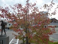 背の低い2本は葉が赤く紅葉していますが、南側の2本はまだ緑色の葉です。