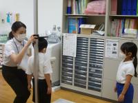 測定してくれているのは実習生です。子どもたち一人一人に声をかけながら進めています。