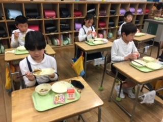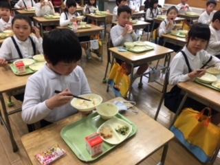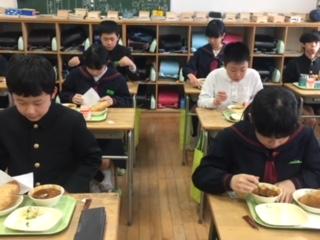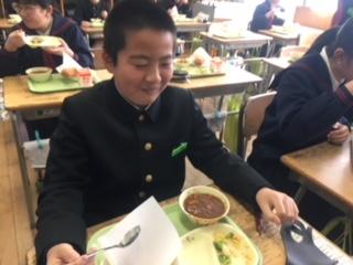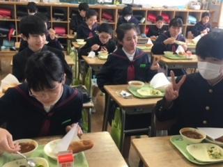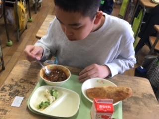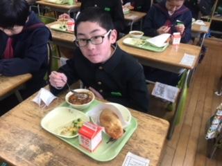 3日(水)今日の給食は、子ども達のリクエストに応えた「揚げパン・ビーフシチュー・花野菜サラダ・ココア味のミルメーク」のリクエスト献立でした。6年生は、津幡小学校で給食を食べるのも、あと10回。自分たちが選んだメニューの給食を、満足そうに食べていました。