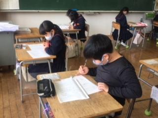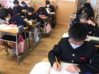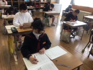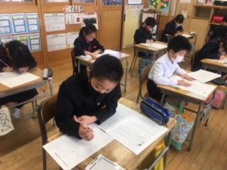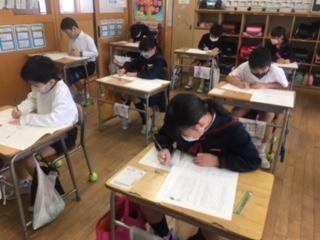 5年生は、12月に続いて2回目の実態調査。今回は、国語・算数・理科・社会の4教科に挑戦でした。これまで学んできた力を確かめるように、最後まであきらめずに真剣な表情で取り組んでいました。