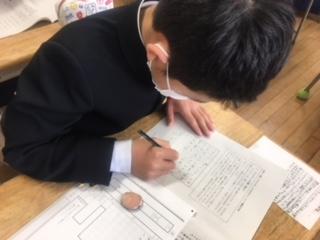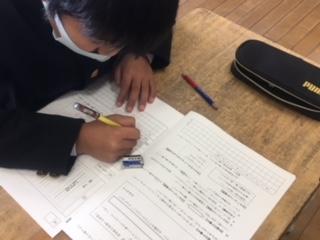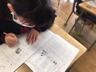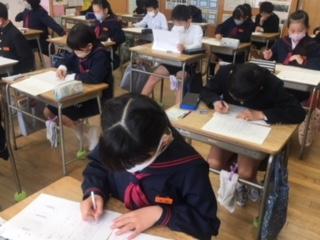 3年生は、初めて国語と算数の学力調査に挑戦しました。いつものテストとは違う形式でしたが、たくさんの問題に全部解答しようと一生懸命書いていました。
