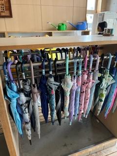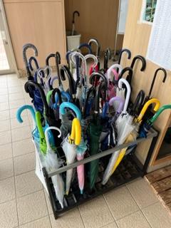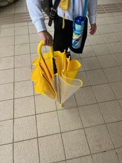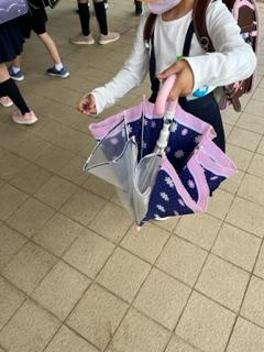 どの学年の児童も、傘について雨水を落として、傘をきれいにたたんで玄関に入ります。
