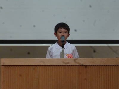 6月7日(金)に、県西田幾多郎記念哲学館で、第66回県学童話し方大会がありました。津幡小学校からは、3年生の本間叶大さんが代表として参加しました。「楽しい陸上」という題名で、家族の励ましの中、陸上教室やマラソン大会で頑張っていることを話しました。堂々とした立派な話し方で、今までの練習の成果を発揮することができました。