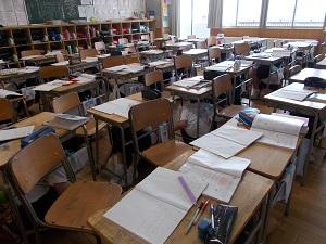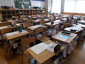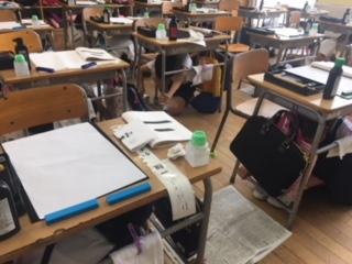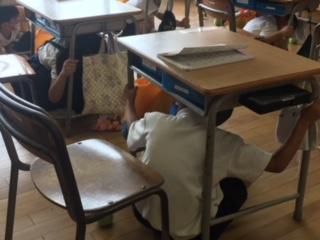 3年1組は、書写の時間だったので心配でしたが、墨や道具を落とさずうまく机の下に潜り込んでいました。