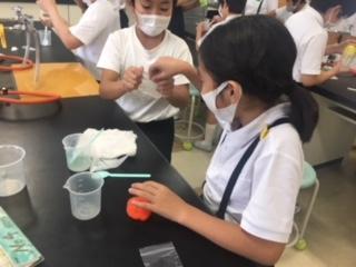 7月8日(水)6限目。科学クラブは、小林誠司科学館長を講師にお招きして「スライム」作りに挑戦しました。増粘剤と洗濯糊をそれぞれ使って2種類のスライムを作りました。小林館長の的確な指示のもと、短い時間内にクラブ初参加の4年生も2つのスライムを作り上げ、硬さや感触の違いを楽しく味わっていました。学校近隣に科学館のような施設があり、児童の教育活動に協力いただけることは、とても嬉しいことです。小林館長先生、ご指導ありがとうございました。