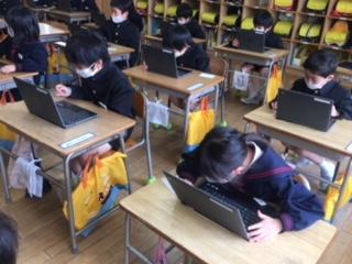 10日(水)1年生が、ようやくタブレットデビューをしました。初めて手にする自分のタブレットに少し緊張しながらも、アカウントやパスワードを先生方に教えてもらいながら打ち込んでいました。6年間使う自分のタブレットです。大事に有効に使っていきましょうね。