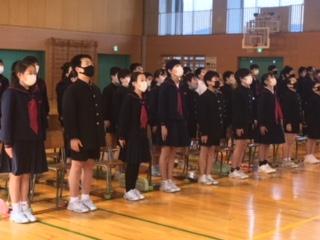 1週間後に卒業式を控え、5・6年生の合同練習が始まりました。さすが、6年生。立つ姿も座る姿も凛としていて、6年間の学びの成果を感じました。