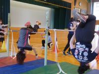 今日は、相河先生を講師に鉄棒の研修を行いました。ウォーミングアップのパラパラで心と体をほぐします。