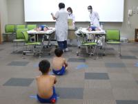 部屋の中では上着を脱いで、静かに待っています。すごいぞ!1年生!
