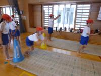 ふとん干しでじゃんけんゲームの練習です。鉄棒になれていろんな技ができるといいね。