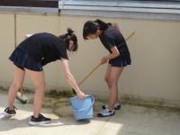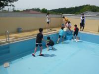 気温は29℃。プールを掃除するには絶好のお天気です。分担した仕事を一生懸命にしてくれました。