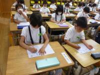 1年生の教室から元気な声が聞こえてきます。のぞいてみるとひらがなの練習中でした。
