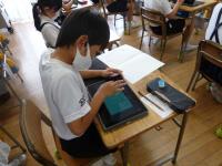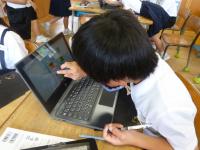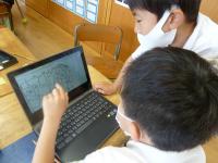 3年生がChromebookで絵をかいています。6月のイメージをデジタル絵画で表現しています。