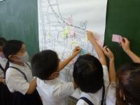 学校の近くにはどんな場所やお店、施設があるのか、知っていることを地図に表していきます。