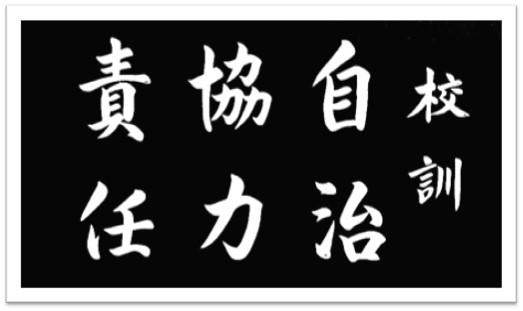 津幡は,加賀・能登・越中の分岐点であり、昔から重要な交通の要所であったのです。梅の周りに型取られた三つの三角形は白帆を意味しています。正義と勇気と英知の三つの白帆を打ち立てて、世の中を立派に乗り越えて進んでほしいという願いを秘めて作られています。また、太古の昔には現在の河北潟がもっと広く、本校の建っているこの辺までさざなみが寄せていたそうです。津幡の“津”とは、水のうるおす所、浅瀬の船着場という意味があり、海辺・水辺の意味を持ち、今でいう港があったと考えられます。“幡”は、薄く平らでひるがえる布のはたという意味ですが、田に種を撒き散らすことという意味もあります。さらに三つの白帆は、本校の校訓である“自治・協力・責任”の言葉をも表しています。