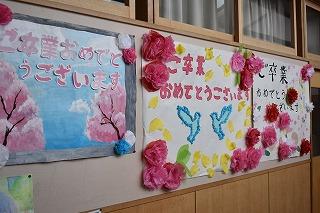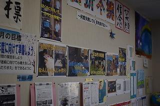 おおぞら学級の教室を覗いてきました。教室後方の掲示板には、1年間の歩みが掲示されています。おおぞらオリジナルの「なんじもんじゃ作り」「人生ゲーム作り」、地域の方々や学校生活指導員の西尾先生に協力いただいた玉ねぎの収穫、じゃがいも掘り、落花生収穫など、3年生1名と2年生1名、そして担任の鍋島先生の3人で、いろいろなことを体験し、すてきな思い出ができましたね。学級目標の「百折不撓~何度失敗しても志をまげない~」のとおり、この一年間、よく頑張りましたね。