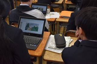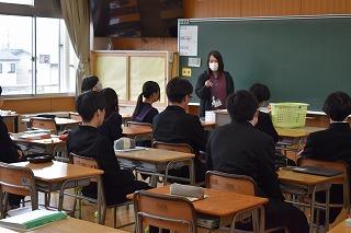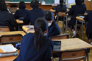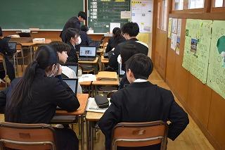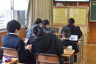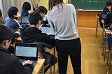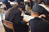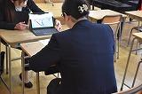 1年生国語科の授業。2つの随筆から一つを選択し、文章中での惹かれた言葉、美しい情景描写、不思議に感じたところ、作者の思いなどについて、まとめていました。3学期も残すところ、今日を入れてあと2日、各学年での授業も明日で終わりですね。