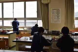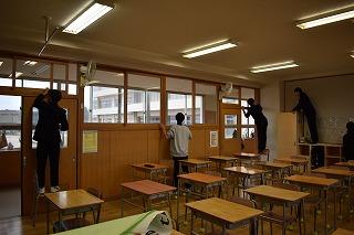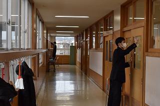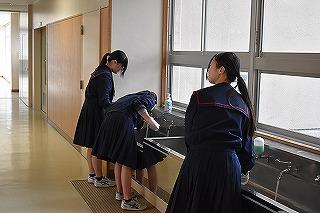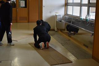 昨日に引き続き、進路等が決定している3年生の皆さんが、清掃奉仕作業に励んでくれました。窓、下足箱、手洗い場のマット、階段、実験器具の清掃など、3年生棟以外のところも、みんなで分担してきれいにしてくれました。今日も、ありがとうございました。明日、受検を終えた仲間たちを気持ちよく迎えることができます。