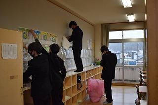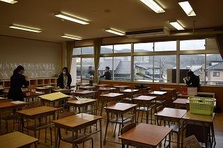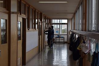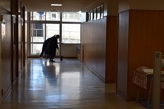 既に進路が決定し、今日明日と入試がない3年生は、各教室や廊下、手洗い場、多目的フロア等の清掃奉仕活動に取り組んでくれました。中学校生活も本当にあと残りわずか、名残惜しい気持ちもあるかと思いますが、「立つ鳥跡を濁さず」ですね。皆さんありがとう、ピカピカになりました。お疲れさまでした。