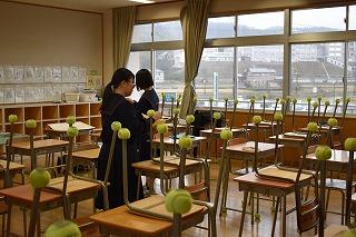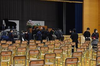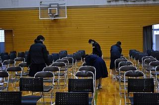 3年生の皆さん、3年間の中学校生活、9年間の義務教育もいよいよ明日一日となりました。皆さんと過ごした一年間の日々はとても充実していて、本当に名残惜しく感じます。皆さんが下校した後、明日の最終準備を行いました。あとは主役の3年生を迎えるのみです。