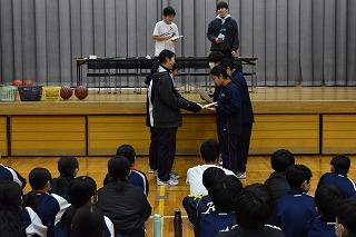 昼休みを利用して、各部活動のメッセージ交換がありました。後輩から先輩へ、思いのこもったメッセージが届けられました。楽しいことも苦しいこともたくさんあった部活動の思い出は、一生の宝物ですね。また、本校の部活動に所属せず、校外でのそれぞれの活動で大いに頑張り、好成績を届けてくれた人たちもたくさんいました。この一年間、嬉しい報告をたくさん聞くことができて、本当にうれしかったです。皆さん、本当にありがとう。