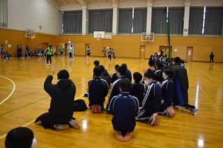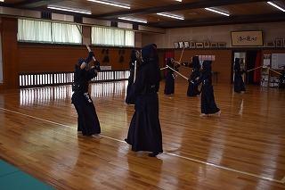 男女剣道部:顧問の指導の下、段位審査に向けての形の練習かな?