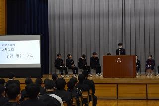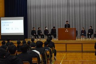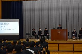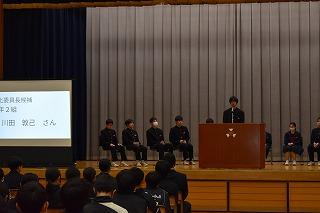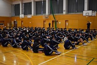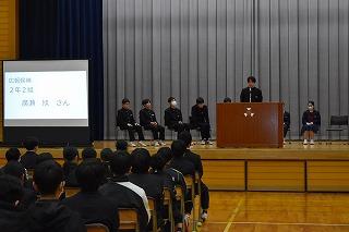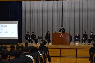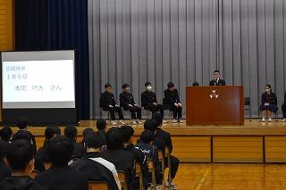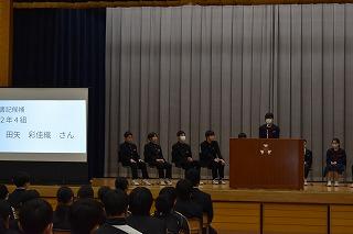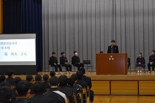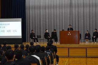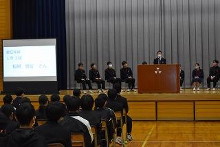 1年生は、3学期から取り組んだYDT(やればできるテスト)で頑張った人たちの表彰や学年主任の先生からのお話がありました。