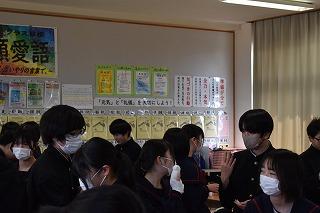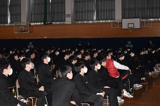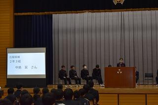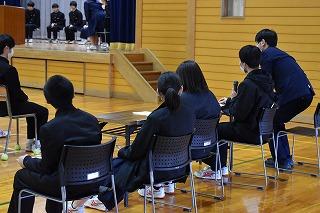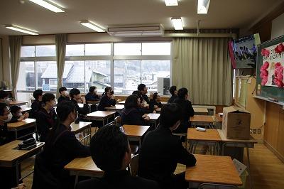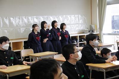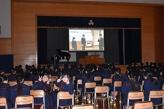 2年生は、学年主任の先生からのお話と、今年度で教員生活を終えられる山本和彦先生に、今までの感謝の気持ちを伝えしました。