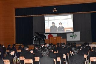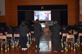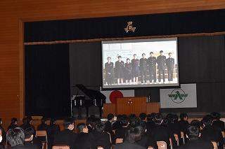 本日4限目に、3年生を送る会が行われました。2年生プログラム委員が編集した3年間の歩みや思い出をまとめたスライドショー、1、2年生プログラム委員からの感謝のメッセージ、そして1、2年生の時にお世話になった恩師の方々からは温かいメッセージをいただきました。1、2年生の初々しい頃のスライドの数々、お世話になった恩師が画面に登場すると、思わず歓声が上がっていました。皆さん、3年間で心も体も大きく成長しましたね。最後に1、2年生のプログラム委員を代表して、山田想さんが、3年生への感謝と新たな旅立ちへの激励を伝えてくれました。素晴らしいメッセージでした。