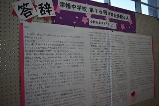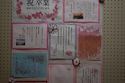 さて、生徒玄関ホールに、先日の卒業式での在校生代表の中濃仁美さんの送辞と卒業生代表の北口美羽さんの答辞の内容が展示されています。もう一度読み返すと、3月9日が脳裏に蘇ってきます。今年度の卒業式は、在校生は参列しませんでしたが、在校生代表の中濃さんの卒業生へのメッセージと卒業生代表の北口さんのお世話になったすべての方々へのメッセージを読んでみてください。