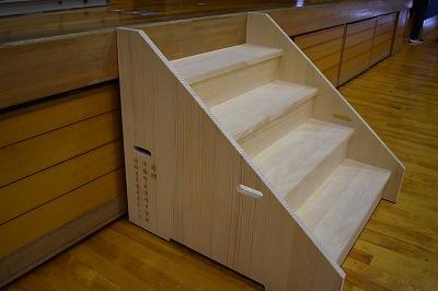 卒業記念品として寄贈いただいた体育館ステージ用階段は、これからも大切に使わせていただきます。生徒の皆さん、保護者の皆様、本当にありがとうございました。