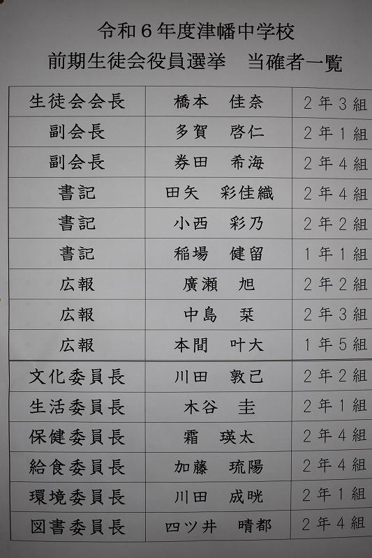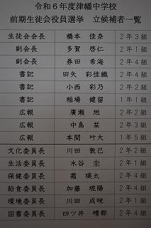 昨日13日の立会演説会、その後の信任投票において、立候補者全員が信任され、令和6年度津幡中学校前期生徒会役員が決定しました。皆さん、よろしくお願いします。