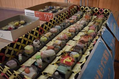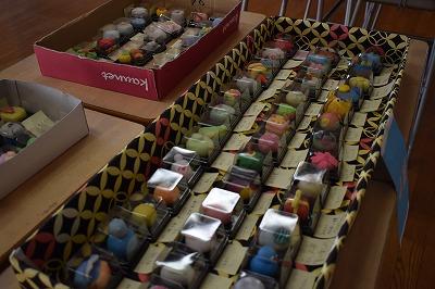 2年生の多目的フロアに、美術科の授業で制作した「津幡銘菓」が展示されています。樹脂粘土を使って、一人一人お気に入りの逸品が完成しました。