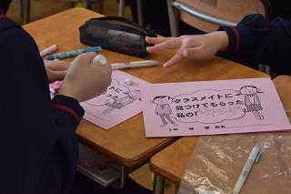 2年生は5限目、クラスメイトから見つけてもらった「キラリ」メッセージの交換をしていました。クラスメイト一人一人からもらったあなた自身の素敵なところです。人はみんなそれぞれ違った個性を持っています。それを互いに尊重し、互いに理解しようと努めることで、さらに素敵な皆さんになっていきますね。仲間からもらったメッセージを眺めている皆さんの表情は、なんだかうれしそうでした。