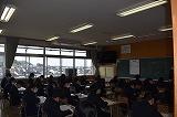 本日3年生は、1、2限目の時間帯に、石川県基礎学力調査(社会・理科)を実施しました。3年生の生徒の皆さんは、落ち着いた様子で、時間いっぱい問題に取り組んでいました。