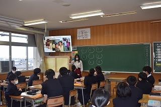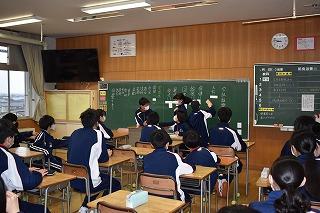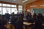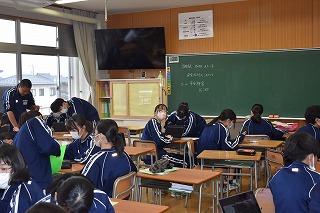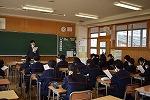 3年生英語の授業。今日は、"What makes you happy?" の表現を学習していました。参観したときはちょうど、ペアでお互いに尋ね合っているところでした。私も1人の生徒に尋ねてみると、"Listening to music makes me happy."と上手に応えてくれました。あなたなら、"What makes you happy and Why?"と聞かれたら、どう答えますか。
