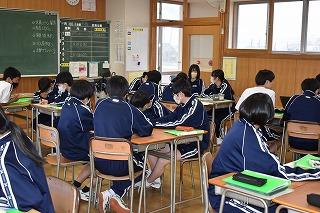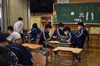 本日は、全学年でテストが実施されました。(1年生:町内統一テスト、2年生:町学力テスト、3年生:実力テスト)1年生は中学校での初めてのテストでしたが、どのクラスも時間一杯問題に向き合う姿が見られました。
